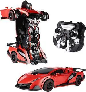 SainSmart Jr. Remote Control Car, Transform Robot RC Cars for Kids Toys, 1:14 Scale Car with One-Button Deformation, 360°Drifting, and Realistic Engine Sound, Gifts for Boys Girls Aged 8+, Red