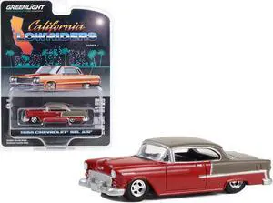1955 Chevrolet Bel Air Lowrider Ruby Red and Matt Bronze "California Lowriders" Series 3 1/64 Diecast Model Car by Greenlight
