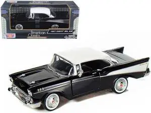1957 Chevrolet Bel Air Black with White Top 1/24 Diecast Model Car by Motormax