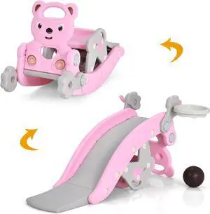 Costway 4-in-1 Rocking Horse & Slide Set Toddler Slide Playset w/Basketball Hoop