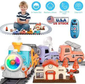 JOYLDIAS 6V Electric Ride on Train for Kids with Curved Tracks, Songs, Stories, Lights, Horns, Storage and Foot Pedals, Black