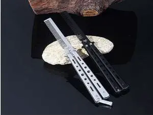 CORN Black Silver Stainless Steel Practice Butterfly In Knife Balisong Trainer Training Folding Knife Dull Tool Outdoor Camping Comb