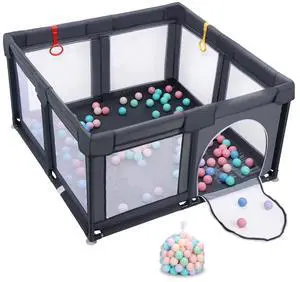 Baby Playpen with 50 Balls | Indoor Outdoor Playard for Toddlers, 47"x47", Gray