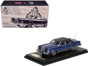 1979 Lincoln Continental Town Car Dark Blue with Black Top and Blue Interior 1/64 Diecast Model Car by Sun Star