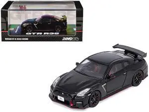 Nissan GT-R (R35) Nismo RHD (Right Hand Drive) Nismo Black with Carbon Hood and Top 1/64 Diecast Model Car by Inno Models