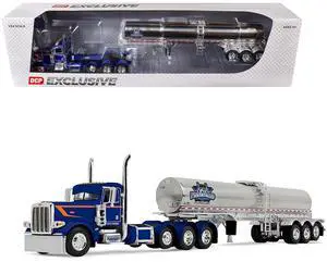 Peterbilt 389 Tri-Axle Day Cab and Walker Food Grade Tank Trailer Blue with Orange 1/64 Diecast Model by DCP/First Gear