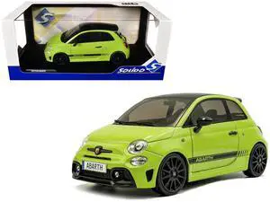 2023 Fiat F595 Abarth Verde Adrenalina Green with Black Top and Stripes 1/18 Diecast Model Car by Solido