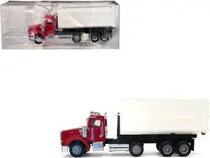 Peterbilt 367 Roll-Off Dump Truck Red with White Box 1/87 (HO) Plastic Model Car by Promotex