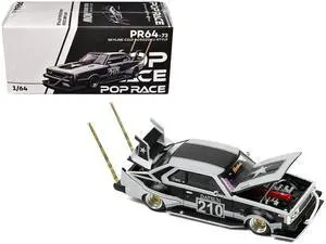 Skyline C210 "Bosozoku Style" RHD (Right Hand Drive) #210 Matt Black and Silver 1/64 Diecast Model Car by Pop Race