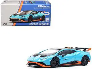 Lamborghini Huracan STO Blue with Black Top and Orange Accents 1/64 Diecast Model Car by Pop Race