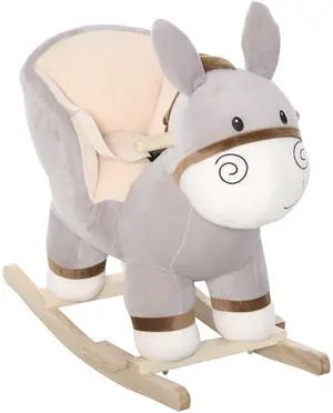 Kids Rocking Chair, Plush Ride On Rocking Horse Donkey with Sound, Wood Base Seat, Safety Belt, Baby Toddler Rocker Toy for 18 - 36 Months, Gray