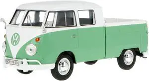 Volkswagen Type 2 (T1) Double Cab Pickup Truck White and Green 1/24 Diecast Model Car by Motormax