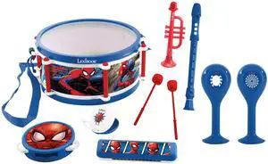 Spider-Man, Set of 7 Music Instruments (Drum, Maracas, Castanet, Harmonica, Recorder, Trumpet, Tambourine), Musical Toy, Convenient Game to Carry, Blue/Red, K360SP