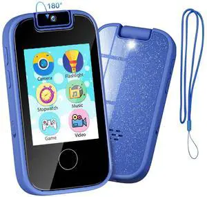 Kids Phone Toy for 3 4 5 6 Year Old, Touchscreen Kids Cell Phone Dual Camera with Music Player Flashlight Puzzle Games Alarm Learning Toys Christmas Birthday Gifts for Boys Ages 3-6 with SD Card Blue
