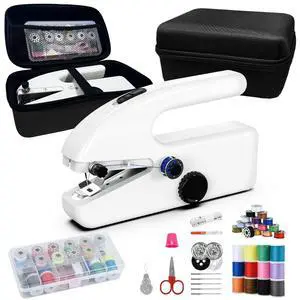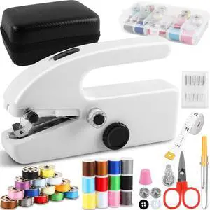 Handheld Sewing Machine, Mini Sewing Machine with Sewing Accessories, Electric Portable Stitch Tool for Beginners, DIY, Home Travel Use(White)