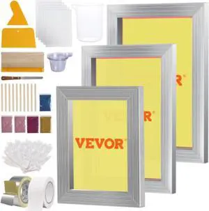 VEVOR Screen Printing Kit, 3 Pieces Aluminum Silk Screen Printing Frames 6x10/8x12/10x14inch 110 Count Mesh, 5 Glitters and Screen Printing Squeegees and Transparency Films for T-shirts DIY Printing