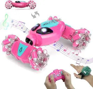 FOTN Remote Control/Gesture Sensing Stunt Car,4WD All-Terrain 2.4Ghz RC Pink Dual Control Off-Road Vehicle Lights MusicModular Lithium Battery, 360° FlipsSnake-Move, Boy/Girl Birthday Gift