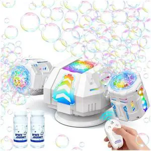 2026 RC Bubble Machine, Rechargeable Bubble Maker with 360°Automatic Rotation & 9 LED Light, 30000+ Bubbles Blower Machine Toys Gifts for Kids, Birthday Parties, Wedding, Indoor, Outdoor Activities