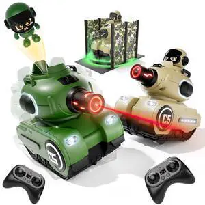 bessome 2 Pack Cute Cartoon Remote Control Battle Tanks with Laser tag|Hobby RC Cars Shoot to Ejected Out|Military Army Toys for 6 7 8 Year Old Boys Girls | Christmas Birthday Gifts for 8-12