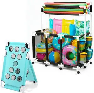Yescom 274 Gallon Pool Float Storage Bin with Portable Bean Bag Toss Game Cornhole Board Set