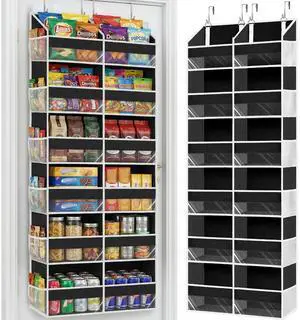 Over The Door Organizer 6 Tiers, Extra Large Behind Door Storage of 12 Compartments, 80 lbs Weight Capacity Hanging Storage Organizer with Clear Window Kids Toys, Shoes, Diapers, Room Storage,Black