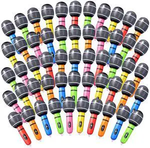 72 Pcs Inflatable Microphones Assorted Colors Inflatable Microphone Props Pretend Plastic Toys for Kids Musical Concert Birthday Party Decoration Role Play Supplies