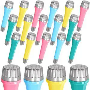 16 Pack Plastic Toy Microphones, Colorful Fake Mics for Goody Bag Fillers and Birthday Party Favors, 4 Colors