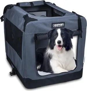 Jespet Folding Soft Pet Crates Kennel, 3-Door Indoor & Outdoor Collapsible Dog Crate, Travel Pet Carrier with Straps and Fleece Mat for Dogs Cats, Rabbits