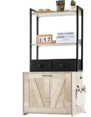 VEVOR Cat Litter Box Enclosure Litter Box Furniture Hidden 2 Shelves & 2 Baskets