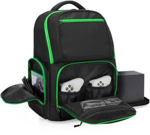 Travel Backpack Compatible with Xbox Series X Carrying Case Game Storage Bag with 2 Inner Spaces for Xbox X/S Console, Multiple Pockets for 15.6 Laptop and Other Gaming Accessories, Black