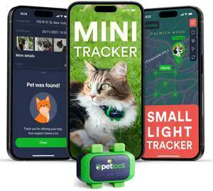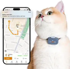Cat GPS Tracker Smallest Waterproof Pet Tracking Device with App, Real-Time Location, Smart Alerts & Geo-Fence, Long-Life Battery, Collar-Compatible iOS & Android (Subscription Required)