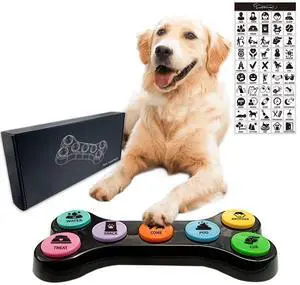 6 Dog Buttons for Communication Pet Talking Buttons Starter Set Dog Speaking Buttons 50 Stickers Recordable Button One Waterproof mat