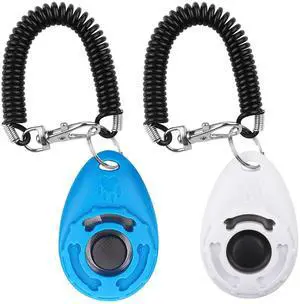 Dog Clicker for Training, 2 Pack Dog Training Clicker, Clicker Dog Training with Wrist Strap, Pet Training Clicker, Perfect for Dog Cat Puppies Behavioral Training (Blue and White)