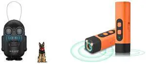 Outdoor Sonic Bark Deterrents for Dogs Rechargeable Anti Darking Device Long Range 50ft with 3 Adjustable Modes, IPX5 Dog Stop Barking Devices Training Tool(Black) and Portable Outdoor Anti Barking Device for Dogs - Ultrasonic Bark Control Device with LED Flashlight 50Ft Stop Barking Dog Deterrent Devices(Orange)