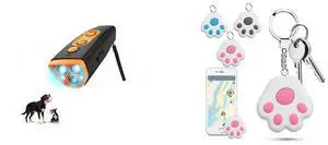 Outdoor Sonic Bark Deterrents for Dogs Rechargeable Anti Darking Device Long Range 50ft with 3 Adjustable Modes, IPX5 Dog Stop Barking Devices Training Tool(Black) and Intelligent Anti-Lost Pet GPS Tracker,Item Finders,Mini Cat Paw Shaped Dog GPS Collar Tracking Device for Pets Kids Key Luggage Wallet(Pink)