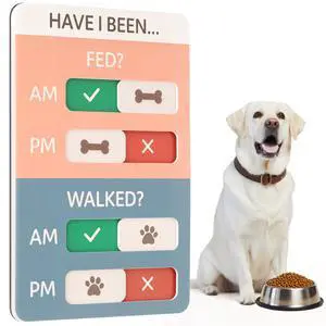 Dog Feeding Reminder, Dog Fed Sign Tracker -Daily Am/Pm Chart Slider Sign for Pet Fed and Walk Reminder, Easy to Use On Fridge Or Wall with Adhesive and Magnet,Pet Supplies