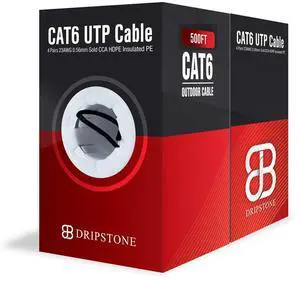 Dripstone CAT6 Direct Burial Ethernet Cable 23AWG Solid CCA UTP, Waterproof HDPE Insulated, Polyethylene (PE) Jacket for Indoor/Outdoor Installations (Black - 500ft)