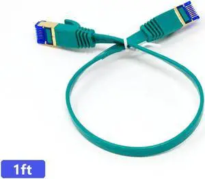 QualGear RJ45 Cat 7 Ethernet Patch Cable, 10Gpbs High-Speed Cable, 600MHz, Triple-Shielded, 1 ft, Green, Flat