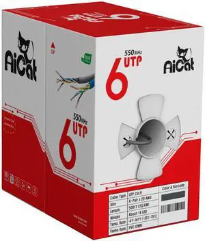 AiCat Cat6 Ethernet Cable 500ft - 23 AWG, CMR, ETL, Insulated Solid Bare Copper Wire Cat 6 Cable with Noise Reducing Cross Separator - 550MHZ / 10 Gigabit Speed, PoE++, Unshielded UTP LAN Cable (Gray)