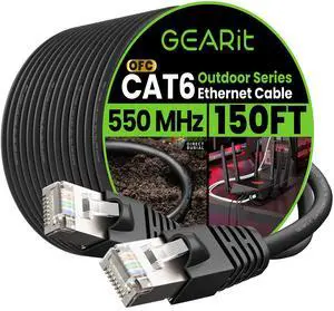 GEARit Cat6 Outdoor Ethernet Cable (150ft) 23AWG Pure Copper, FTP, LLDPE, Waterproof, Direct Burial, In-Ground, UV Resistant, POE, Network, LAN, Internet, Cat 6, Cat6 Cable - 150 Feet- Model #: C0A43287560437662