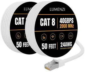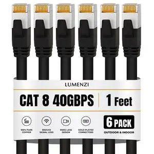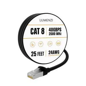 Cat8 Round Black Ethernet Cable 1ft,5ft,10ft,25ft,40ft,50ft,100ft,500ft,1000ft, 1 Pc Pack, 40Gbps 2000MHz Network Patch Cord, S/FTP Shielded LAN Cable