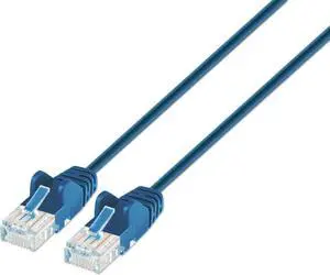 Intellinet Cat6 U/UTP Slim Network Patch Cable, 0.5 ft., Blue, 10G, 250 MHz, 100% Copper, 30 AWG, RJ45, Stranded, Snag-free, Gold-plated Contacts- Brand: Intellinet Network Solutions