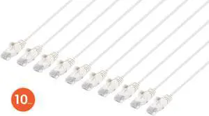 Intellinet Cat6 U/UTP Slim Network Patch Cable, 1 ft., White, 10-Pack, 10G, 250 MHz, 100% Copper, 30 AWG, RJ45, Stranded, Snag-free, Gold-plated Contacts- Brand: Intellinet Network Solutions