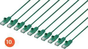 Intellinet Cat6 U/UTP Slim Network Patch Cable, 1.5 ft., Green, 10-Pack, 10G, 250 MHz, 100% Copper, 30 AWG, RJ45, Stranded, Snag-free, Gold-plated Contacts- Brand: Intellinet Network Solutions