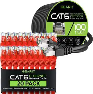 GEARit Cat 6 Ethernet Cable (20-Pack 3 Feet) Cat6 Network Patch, 10Gbps, RJ45, Snagless Cord, Gold-Plated Connectors, Internet for PC, TV, Tablet, Router, Printer, Servers, IT Data Center - White
