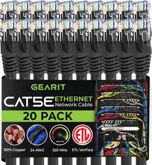 GearIT Cat 6 Ethernet Cable (24-Pack 2 Feet) Cat6 Network Patch, 10Gbps, RJ45, Snagless Cord, Gold-Plated Connectors, Internet for PC, TV, Tablet, Router, Printer, Servers, IT Data Center - Black