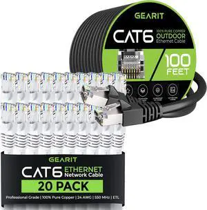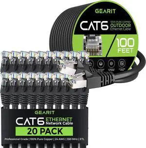GEARit Cat 6 Ethernet Cable (100-Pack 1.5 Feet) Cat6 Network Patch, 10Gbps, RJ45, Snagless Cord, Gold-Plated Connectors, Internet for PC, TV, Tablet, Router, Printer, Servers, IT Data Center - Black