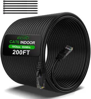 200FT Cat6 Ethernet Cable, Cat 6 Patch Cable, Cat6 Internet Cable, UTP Network Cable, Indoor and Outdoor, PoE, 24AWG CCA, Compatible for PC, Laptop, Router, Switch, Server, with 25 Cable Ties - Black- Brand: ecjtu