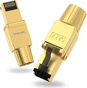 VCELINK RJ45 Connectors Tool Free Cat 8, Shielded RJ45 Modular Plugs 40 Gbps 2000MHz PoE++, Reusable Easy CAT 8 Termination for 23 AWG-22 AWG LAN Cable, 2-Pack
