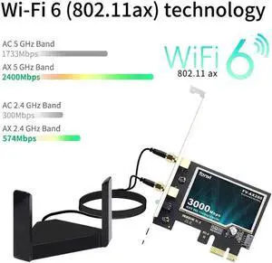 • Wireless Data Rates: 6GHz: 11ax: Up to 2402 Mbps(dynamic) 5 GHz: 11ax: Up to 2402 Mbps(dynamic) 11ac: Up to 1732 Mbps(dynamic) 11n: Up to 300 Mbps(dynamic) 11a: Up to 54 Mbps(dynamic) 2.4 GHz: 11ax: Up to 574 Mbps(dynamic) 11n: Up to 400 Mbps(dynamic) 11g: Up to 54 Mbps(dynamic) 11b: Up to 11 Mbps(dynamic)